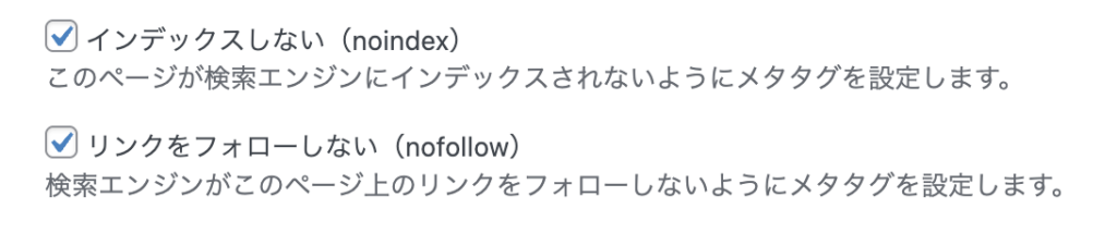 編集画面下部のSEO設定エリアにあるチェックを有効にしておきましょう。