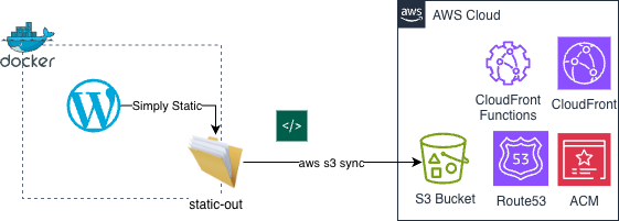 ローカルのDocker WordPressでコンテンツを管理し、Simply Staticで静的ファイルを生成、S3+CloudFrontでWeb公開する構成を構築した記録です。